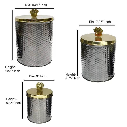Black Nickel Embossed 3-Piece Pet Canister Set – Golden Paw Handle & Lid