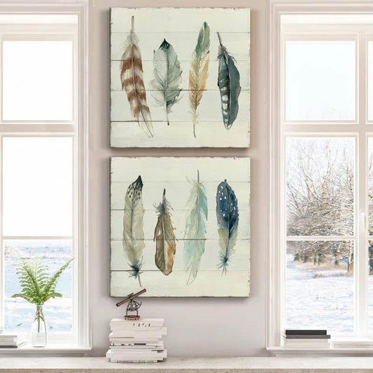 Shiplap Feathers I – Set of 2 (16” x 16”)