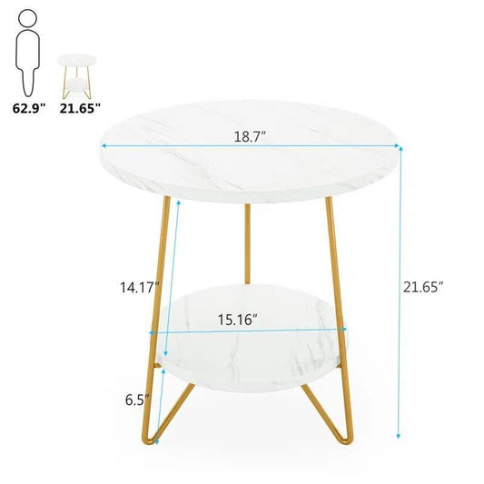 Modern Marble-Top End Table/Nightstand with Gold Frame