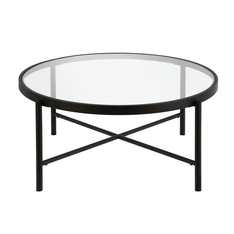 Elevate your living space with this sleek and modern round coffee table, designed to be a stylish centerpiece in any contemporary setting. Featuring a sturdy black steel base and a clear tempered glass top, this table blends minimalist elegance with durability. The open design and X-shaped crossbar add structural support while maintaining a clean, airy feel. Whether you’re displaying décor, setting down drinks, or hosting guests, this coffee table offers both functionality and sophistication.