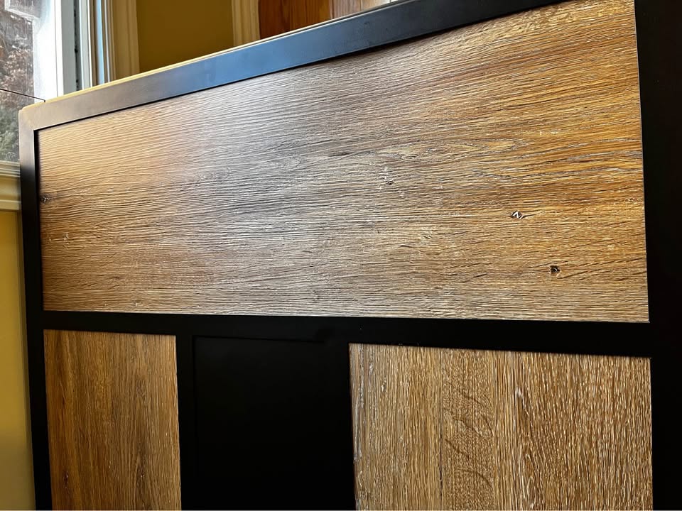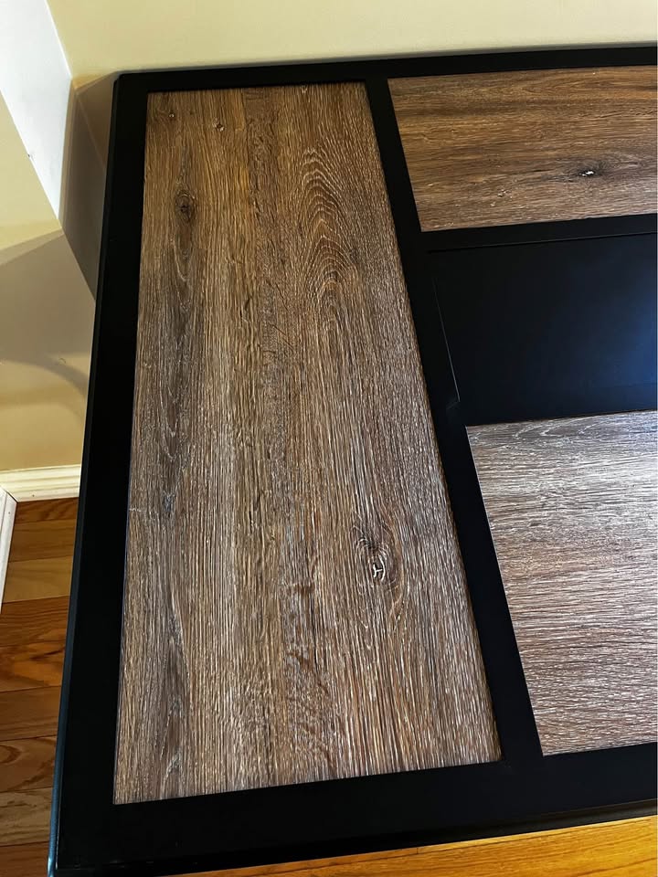 Material: Metal frame with wood-look panel design
